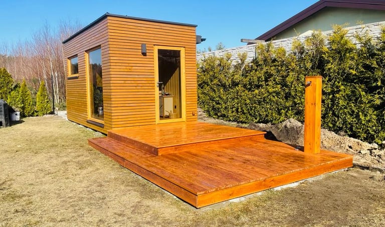 SAUNA WOLNOSTOJĄCA Z TARASEM